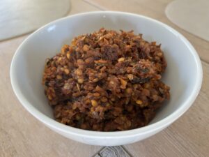 Mit ein wenig Phantasie und den passenden Gewürzen gibt es heute den „Low – Carb – Brotaufstrich“ aus dem Thermomix. Was hier immer gut passt ist der aktuell wachsende Bärlauch in unserem Garten.